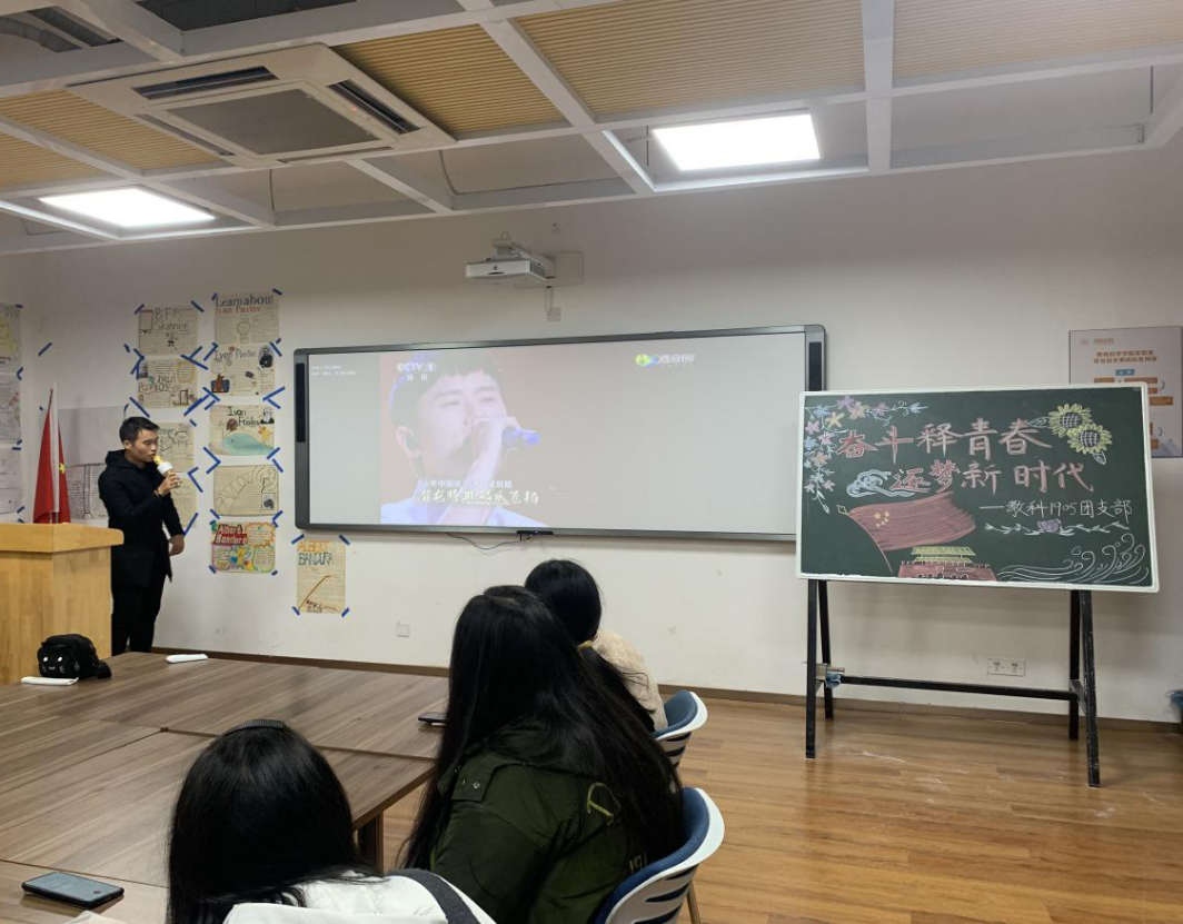 活动最后,李明韩同学带领大家合唱《少年中国说》,“不负年少”唱出了同学们心底的声音,高昂的歌声在教室回荡。在这振奋人心的歌声中,李明韩同学对本次活动进行了总结:作为青年人理应在最好的时光用奋斗释放自己青春无限的活力,激励同学们以“青春之我,奋斗之我”来实现自己的理想抱负,为中国新百年计划贡献自己的力量。