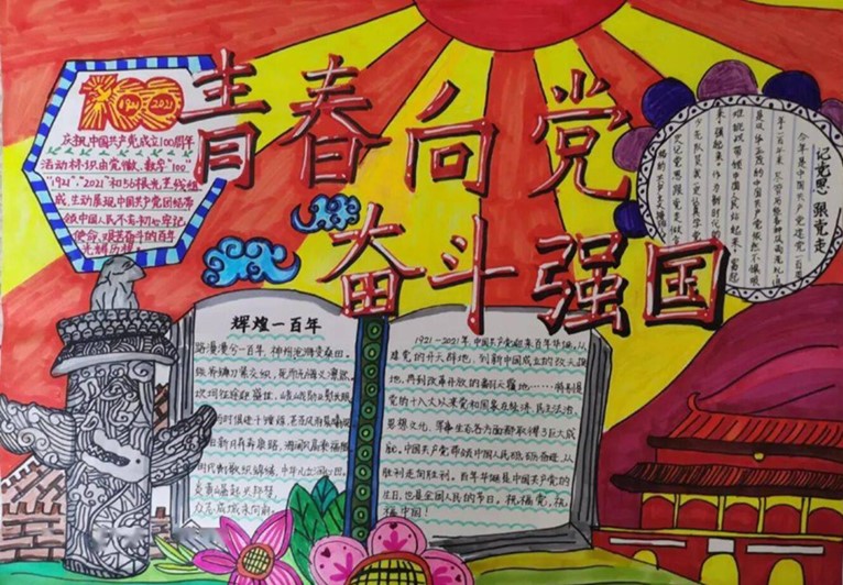 图为2008班同学绘制的“青春向党”手抄报。记者 魏笑 摄
