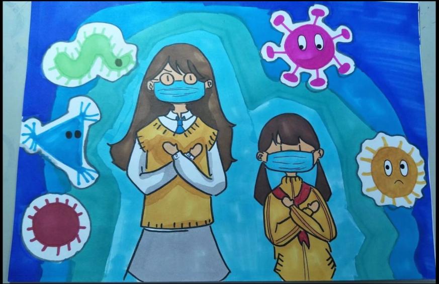 图为单煜瑶绘画的《抗疫》。记者 单煜瑶 摄