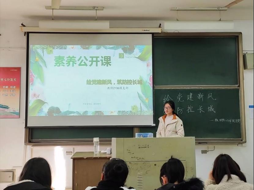 教科网10月14日电(记者 单煜瑶 陈庆旭)为了帮助同学们坚定理想信念,厚植爱国情怀,勇于担当重任,同时让大家能够在老员工活中磨砺自己的意志品质,锻炼过硬本领。2106团支部全体成员在崇文楼1-303开展了以“绘党建新风,筑防控长城”为主题的素养公开课。