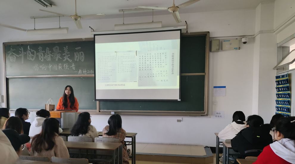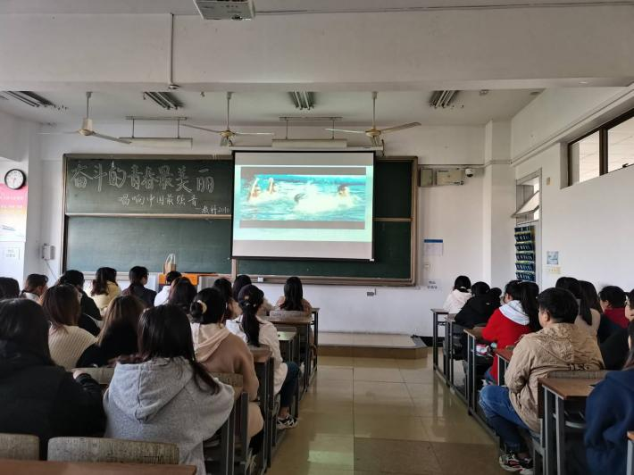 活动伊始,2010班团支书介绍习近平总书记提出的“青春是用来奋斗的”的具体内容,初步了解奋斗的意义。随后同学们观看电影《五个扑水的少年》的片段,一帧帧明朗炙热的画面展现少年们的刚毅无畏,诠释了一场奋斗的青春。同学们分享观影后的感悟,进一步认识到社会主义新时代青年实现中华民族伟大复兴的使命与责任之重。