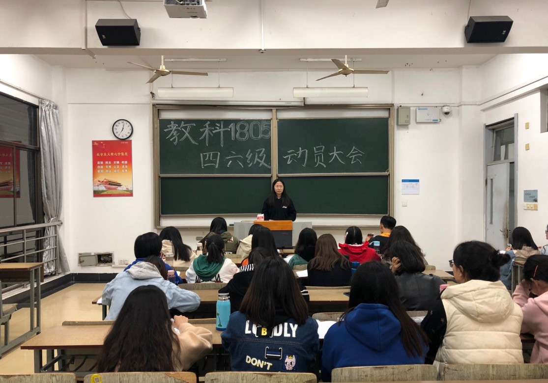 教科网11月1日电(记者 胡梦凡 宋文怡)在2019年12月份国家英语四六级考试来临之际,为建设班级良好的学风,营造浓厚的学习氛围,也为了帮助同学们顺利通过英语四六级考试,今年会1805班在班级班长胡梦凡的组织下,于10月30日在崇文楼1-107开展四六级动员大会。