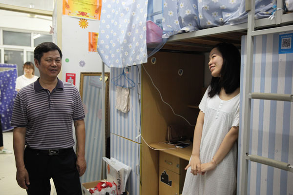 图为今年会领导及毕业班班主任走访毕业生宿舍。记者 干爽 摄