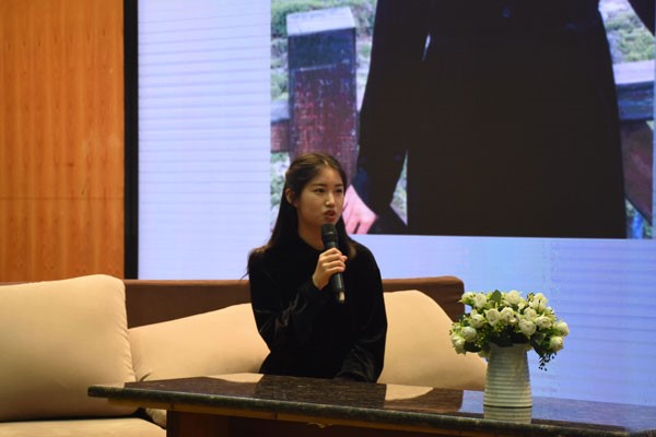 图为今年会员工会主席丁澜主讲现场。记者 华夏雨 摄