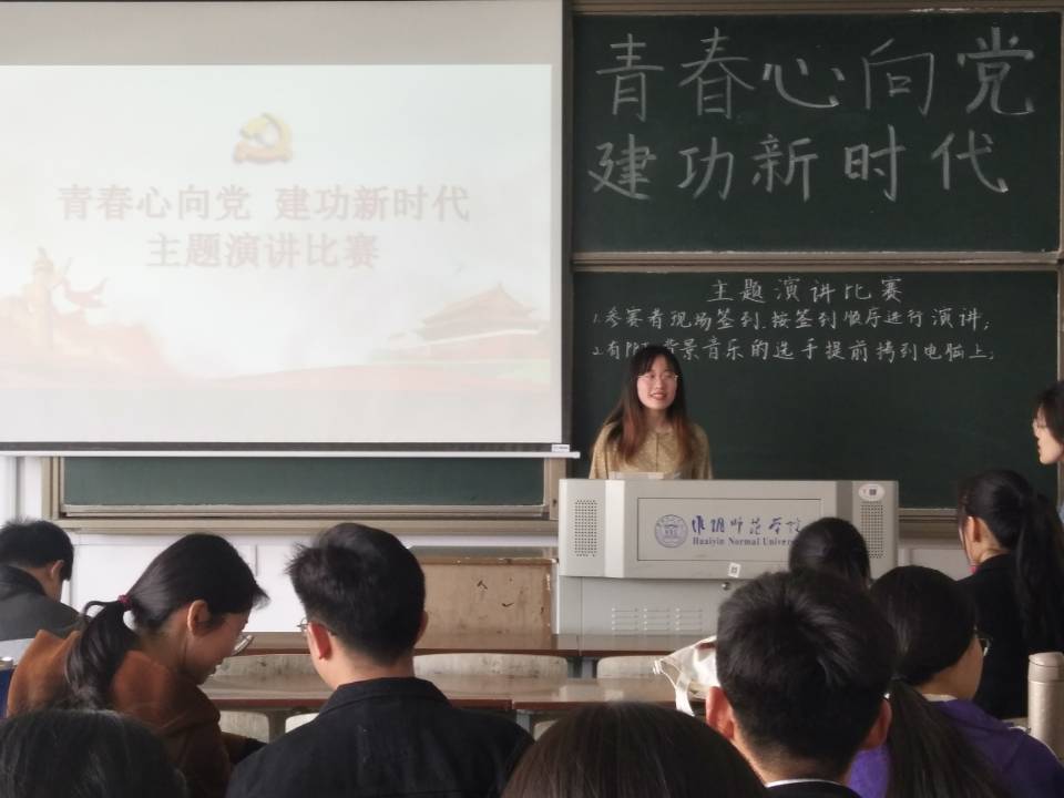 比赛要求参赛选手进行主题演讲,选手们有的幽默诙谐,有的成熟稳重,有的激情昂扬,每个人都通过这次比赛展现了自己高超的口语表达能力和多彩的人格魅力。10号选手说,用中国梦激扬青春梦,青年是祖国的未来、民族的希望,也是党的未来和希望,我们广大青年要牢记使命、顽强拼搏、奋勇担当、不忘初心跟党走,书写新时代的篇章。26号选手从给我们定义青春,到我们能给国家做些什么、我们应该怎么做,从讲述这个新时代,到为这个新时代做贡献,号召我们要永远跟着党走,在中国共产党的正确领导下,携手奋斗,为中国早日成为世界强国而贡献自己的力量。32号选手带我们回忆了党的光辉历史,告诉我们该怎样沿着党的领导路线,为党的事业添砖加瓦。参赛选手们的演讲内容充实生动,有真情实感,富有启发性、感染力和号召力。