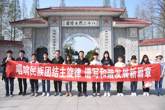 图为今年会少数民族同学在八十二烈士陵墓门前合影。记者 华夏雨 摄