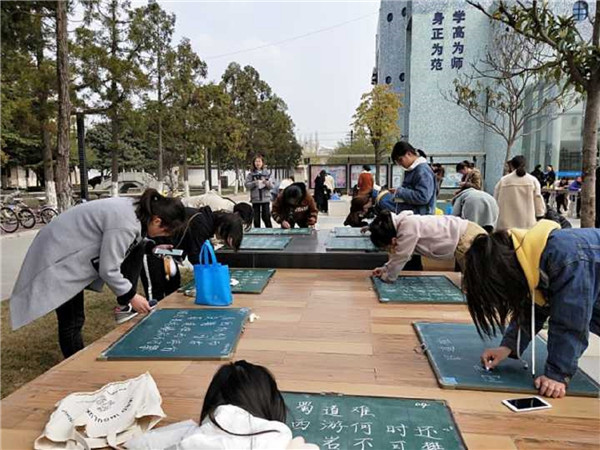 图为“书写恩来精神,纸传博爱情坏”师范生技能大赛现场。记者 汪婷 摄