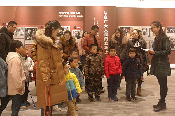 图为亲子携手参观校史馆现场。记者 茆星月 摄
