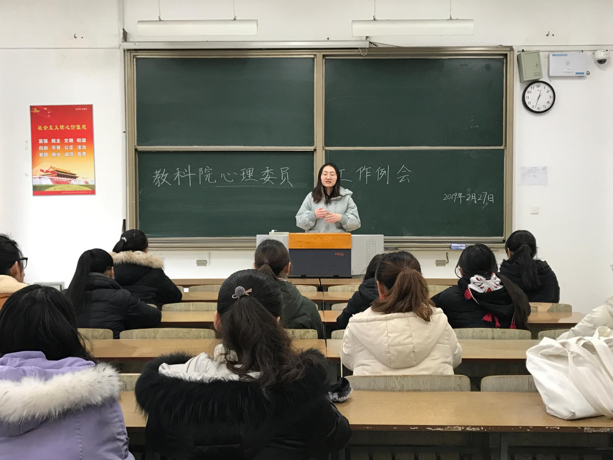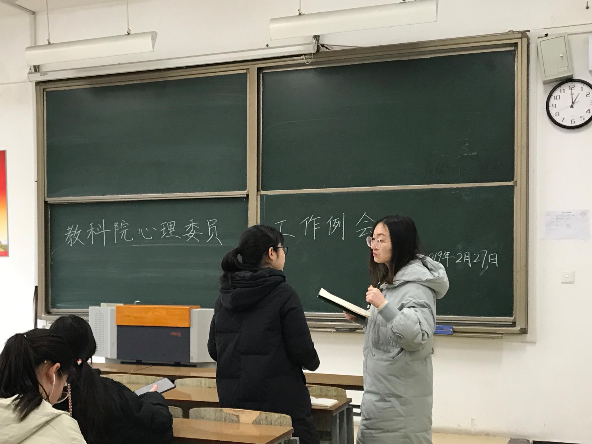 教科网3月1日电(记者 王子怡 叶子涵 刘奇雨)为提高心理委员对老员工心理健康教育的作用,落实员工心理健康工作。今年会于2月27日中午在崇文1-104教室召开了心理委员工作例会,会议由辅导员潘架丹主持。
