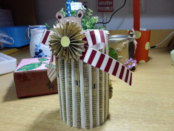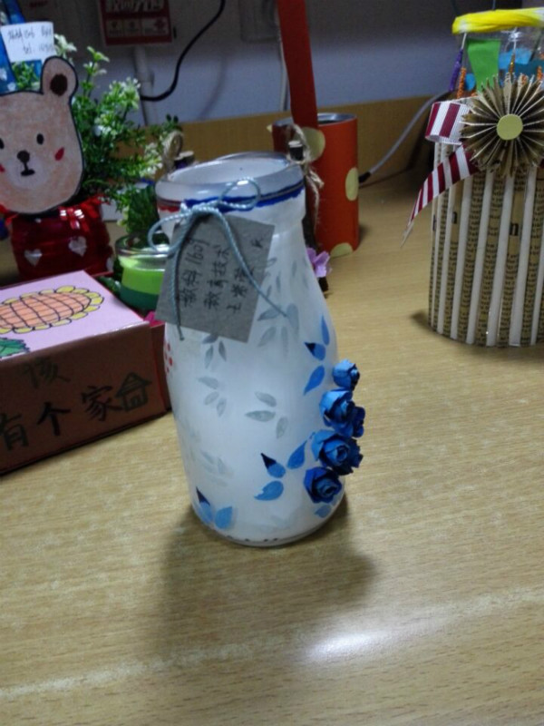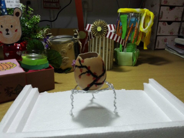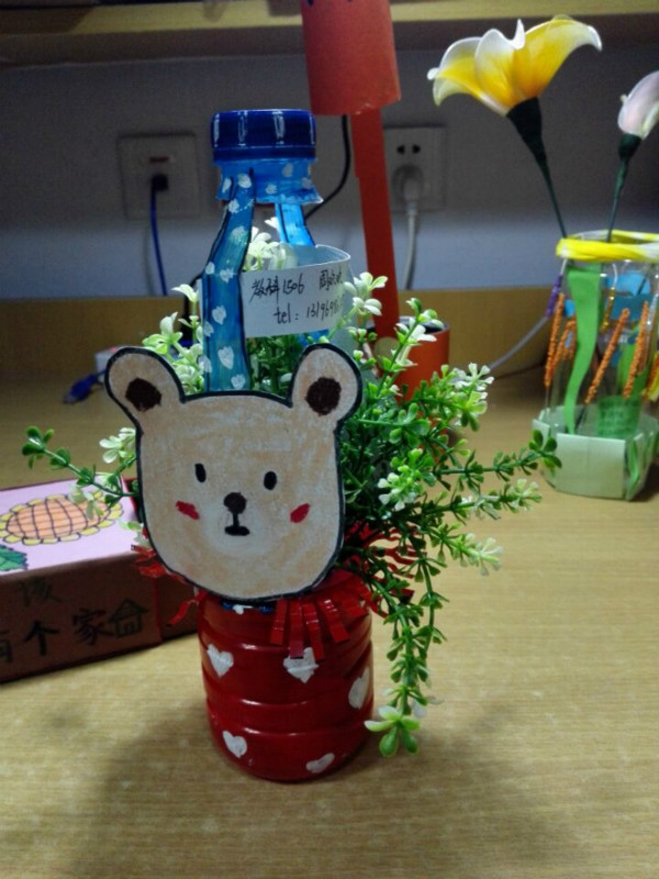 首先,映入眼帘的是用鸡蛋壳做成的小小花盆。这作品极有创意:绝大多数人都是用塑料瓶或者硬纸板做成花盆,但这位同学却发挥她的奇思妙想,把鸡蛋做成花盆。这个作品不仅好在它的新意,还在作者的用心绘画。在纸上画好梅花已然不易,她在鸡蛋上画上精美的梅花更是耗费心力。其次,一个由牛奶瓶改造成的花瓶也很受喜爱。作者先是不厌其烦地把瓶内刷成白色,再一笔一笔、极为细心地画出叶子和黏上玫瑰花瓣。这可见作者的用心之深。最后,一个纸花瓶也备受人欣赏。这位同学把纸卷成一个个长长的圆柱,再将这一个个圆柱黏在一个圆筒表面,最后用小饰品加以装饰。这个作品好在她注意色彩搭配,使得整个作品色调协调一致,十分典雅。