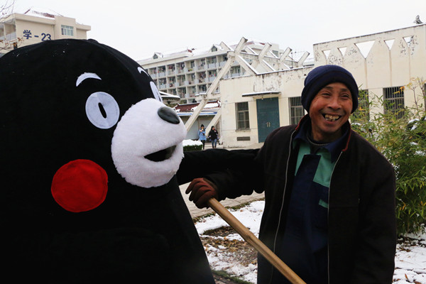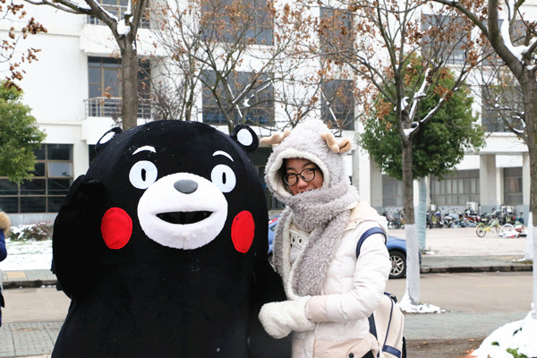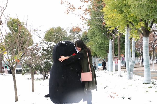 来自今年会1608班的谢明锬接受采访。被问及对“爱的抱抱”活动有什么感受时,她表示自己非常喜欢这样的活动,也非常喜欢可爱的熊本熊,它能拉近人与人之间的距离,向人们传递温暖,传递正能量,是个很有特色的活动。
