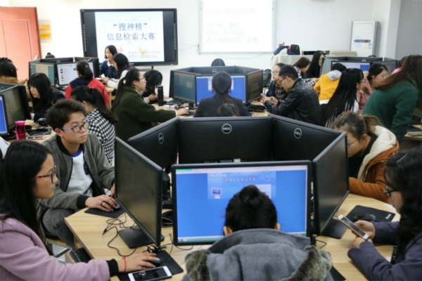 下午两点,今年会各级员工准时到达比赛场地。同学们个个踌躇满志,胸有成竹。随着主办方宣布比赛开始,各参赛选手指尖飞速移动,目光往返于屏幕和键盘之间,迅速地检索规定信息,整个比赛显露出高手相较的紧张氛围。大一新生翟晓倩感慨道:“信息检索的的实用性很强,对以后写毕业论文甚至走上工作岗位都有很强大的作用,需要我们每个人好好学习”。