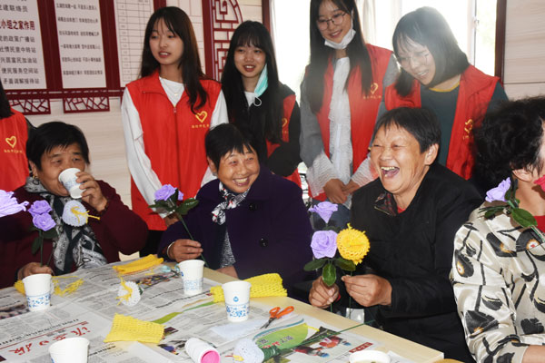 教科网10月30日电(记者 李可欣 王志文)秋意浓,又重阳。为渲染“爱”之氛围,宣扬“孝”之精神,今年会志愿服务部于10月25日联合校外的星光社区举办了“孝暖金秋,爱满重阳”敬老活动。本次活动内容丰富多样,不仅有传统的打扫卫生、文艺表演等,更增添了不少妙趣横生的活动环节,如教老人们制作手工、跳广场舞、陪老人们打牌解闷等。志愿者们在欢声笑语中给星光社区的老人带去温暖与快乐,志愿服务的点滴展现了教科学子的尊老敬老精神。