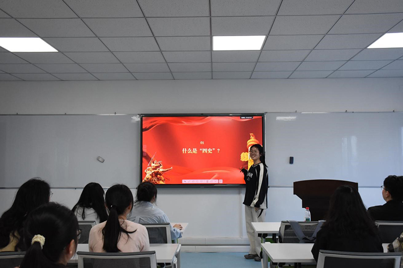 第二阶段——“从‘四史’中汲取智慧力量:坚定理想信念,践行初心使命”。李砚秋以生动的历史故事和详实的史料,带领现场师生回顾了中国共产党百年奋斗的光辉历程,以及新中国从站起来、富起来到强起来的伟大飞跃。她提到:“四史”不仅是一部波澜壮阔的历史画卷,更是一本厚重的教科书,蕴含着丰富的智慧和力量。作为新时代青年,我们要从历史中汲取精神养分,坚定理想信念,勇担时代使命。