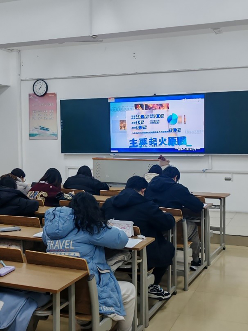 班会期间,各班班长积极组织同学观看直播,并结合课程内容展开讨论。2309班通过分析近年来高校火灾事故案例,强调了违规使用电器、乱接电线等行为的危险性;2303班则模拟了火灾疏散场景,帮助同学们掌握正确的逃生技巧;2306班还介绍了灭火器的使用方法,并提醒大家定期检查消防设施,防患于未然。