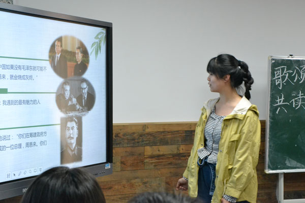 第一组成员通过《你是这样的人——回忆周恩来口述实录》讲述了周总理独特的人格魅力,以一则小故事再现了周恩来公而忘私的革命精神和丰富的情感世界;第二组成员用《周恩来传》这本书向我们展示了尼克松等人对周恩来的评价以及“只有终于事实,才能终于真理”等周恩来语录,从中展现出周恩来良好的口才和优秀的外交才能;第三组小组成员介绍了《周恩来:永远的榜样》这本书的内容与其中的精彩片段,而李洪峰对周恩来的评价更是让同学们深刻的认识到周恩来是大家永远的榜样。