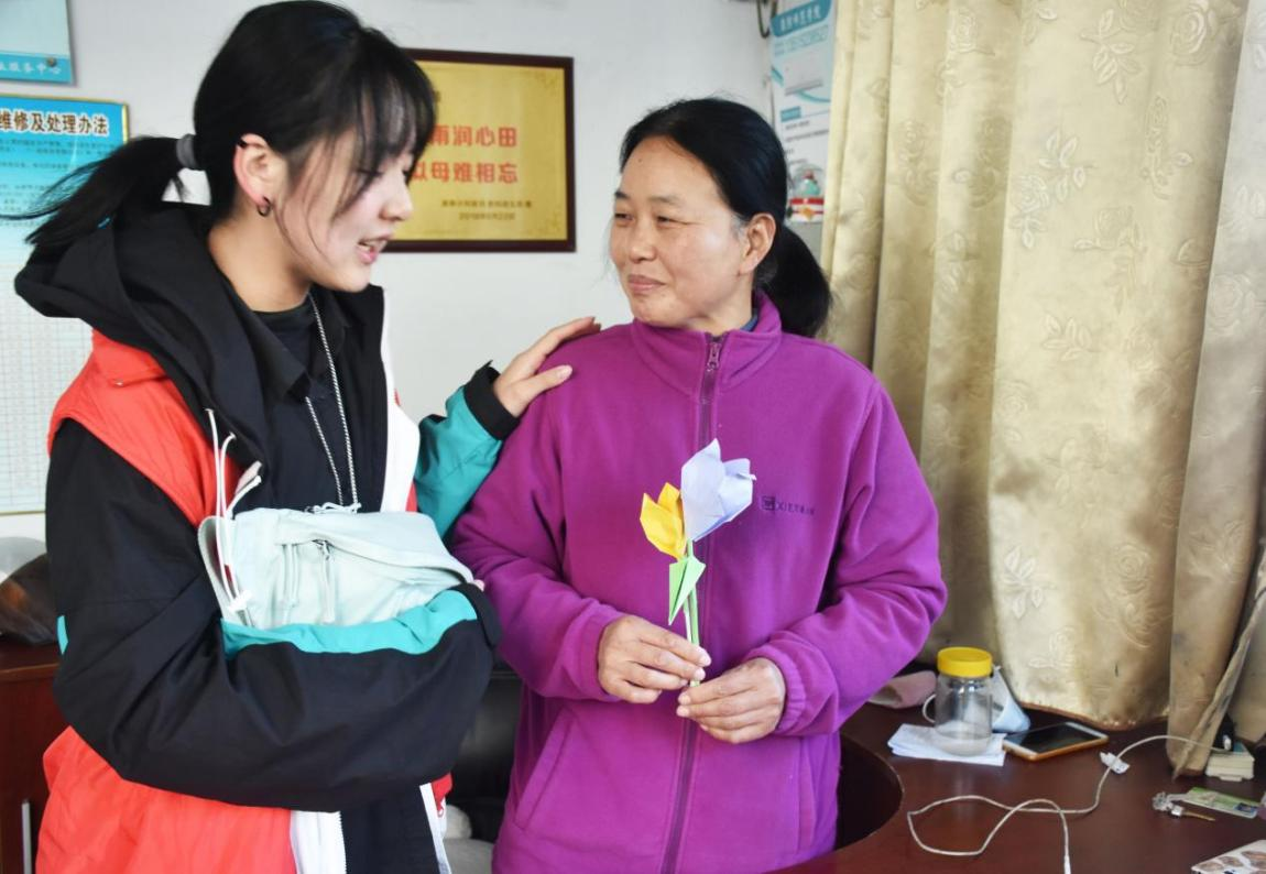 11月13日下午,团队成员集中制作手工作品,做好准备工作。本次活动中,“槐青”志愿服务团队拜访在校工作的叔叔阿姨,送上精心准备的手工作品,并表达诚挚的祝福与感谢,工作人员在与志愿者们的亲切交流中度过了一段轻松而愉悦的时光。