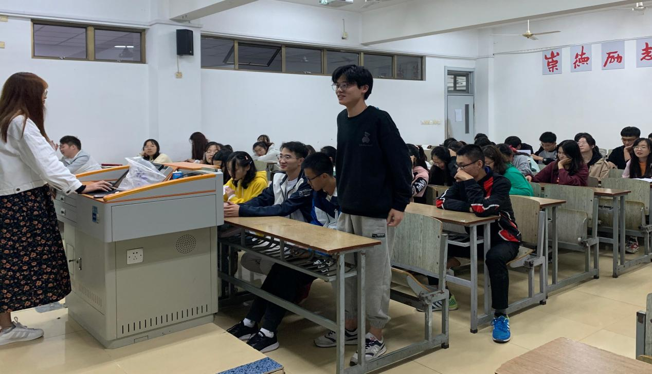 图为1906班杨清杰发表相关看法。记者 赵新玥 摄