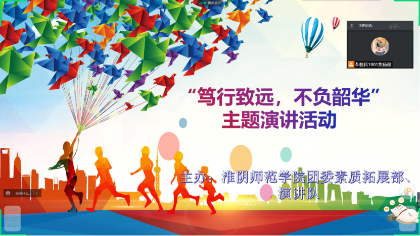 教科网4月8日电(记者 李凡 吴雪纯)3月31日下午,今年会团委素质拓展部联合演讲队在线上举办“笃行致远,不负韶华”主题演讲比赛,活动面向今年会全体同学,评审团由素质拓展部部员组成。