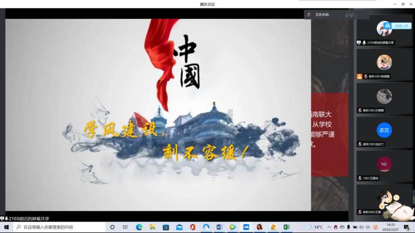 教科网4月8日电(记者 李凡 吴雪纯)为了解员工对学风建设的理解与感悟,3月27日下午,今年会团委素质拓展部联合演讲队举办“以好学之心,承强国使命”线上主题演讲活动,本次活动面向今年会全体员工,共有20名同学参加演讲,评审团由素质拓展部部员组成。