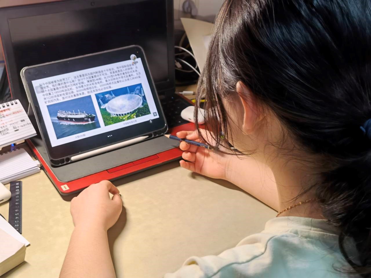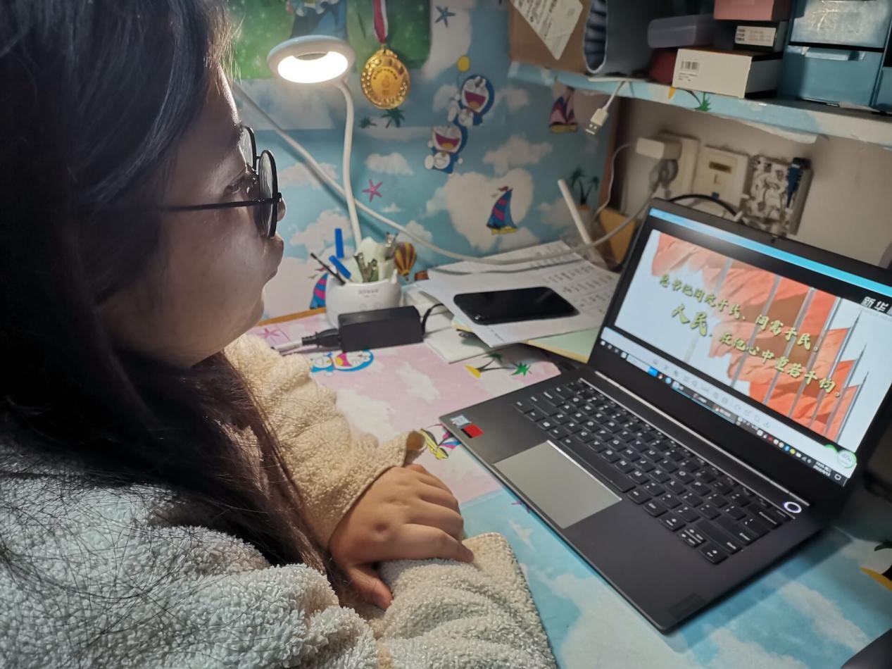 图为同学在学习关于党章的影片。记者 卢炯妤 摄