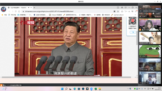 教科网4月8日电(记者 蔡欣芸 陈庆旭)为积极响应党的号召,激发当代青年人的建设热情,切实提高青年的思想认识,强化青年的学习自觉,引导青年坚定理想信念,明晰成长方向。4月13日,2101团支部于线上开展了主题为“秉先辈复兴愿,立青衿鸿鹄志”的新思想公开课。