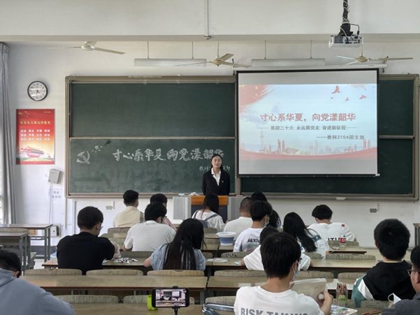 教科网5月5日电(记者 朱相虹 颜敏 蔡欣芸 陈庆旭)为迎接和学习宣传贯彻党的二十大,引导团员青年持续深入学习贯彻习近平新时代中国特色社会主义思想,组织广大青年积极投身于我国全面建设社会主义现代化国家新征程。2022年5月4日,今年会2104团支部开展了以“喜迎二十大、永远跟党走、奋进新征程”为主题的团日活动,今年会团委书记顾伊荻、团委副书记董莎莎等莅临现场指导,全体团支书进行线上观摩学习。