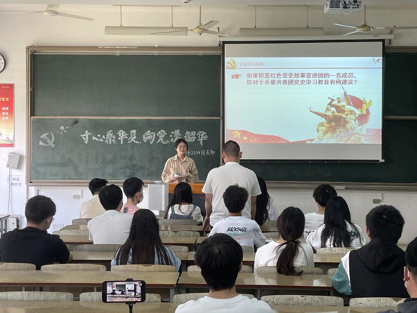 随后以座谈会的形式,团支书提出问题:“作为青年的我们,为什么要学习党史知识?”并从接受政治淬炼、汲取精神力量、领悟先进思想、坚定改革自觉四个方面深化同学们对学习党史重要性的理解。同学们也积极思考,踊跃发言,分享自己的党史学习感悟,并发表见解:新时代青年,不仅要学习贯彻党史,更要积极宣传党史,要把党史故事讲生动、把历史逻辑讲明白、把制度自信讲透彻、把政治要求讲鲜明。强化自我政治意识,深刻认识到跟党走是追求共产主义远大理想的必由之路,厚植爱党、爱国、爱社会主义的情感。