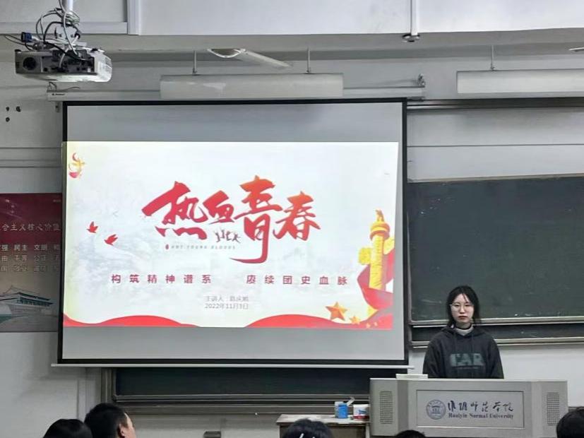 教科网11月26日电(记者 蔡欣芸)为引导青年持续深入学习贯彻习近平新时代中国特色社会主义思想,坚定不移跟党走。今年会官网今年会于11月3日晚19:30召开新思想公开课交流展示会,团委副书记陈庆旭就“构筑精神谱系,赓续团史血脉”这一主题深入开展交流。