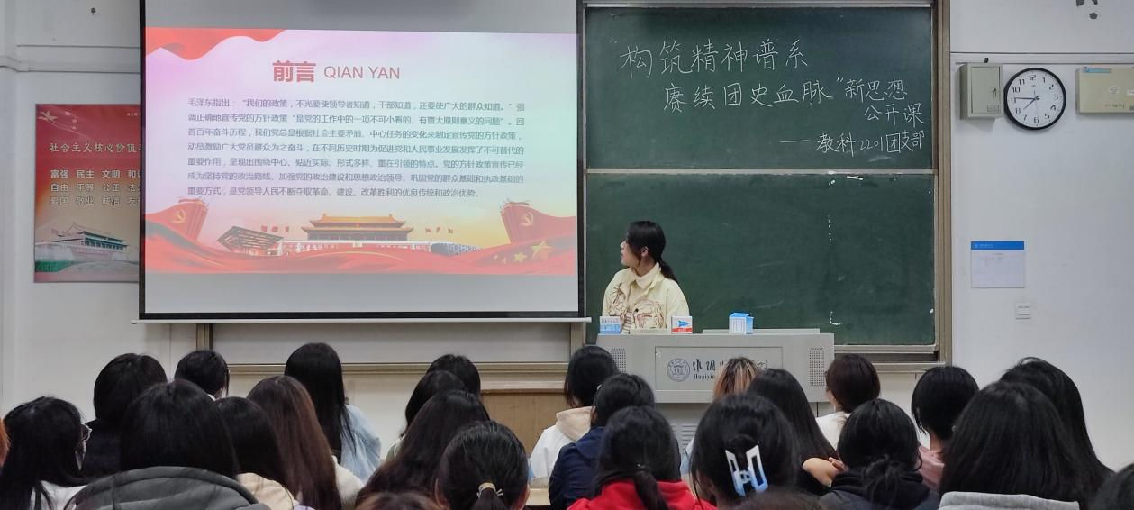 教科网11月28日电(记者 谢胡宇 秦琦)为引导广大团员青年厚植爱国主义信念,牢记团史,勇担时代重任,把稳理想之舵,努力成为建设中国特色社会主义的新时代接班人,2022年11月23日,2201团支部在崇文楼1-409开展了以“构筑精神谱系,赓续团史血脉”为主题的素养公开课。