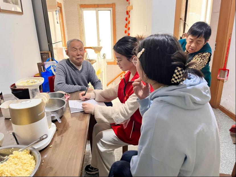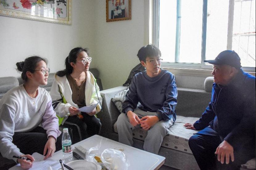 图为志愿者上门进行探望、访谈。记者 颜静怡 摄