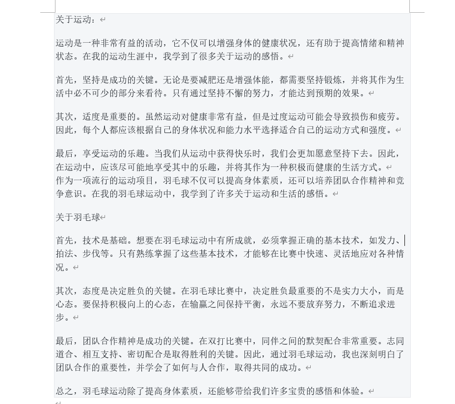 图为同学的运动感悟。
