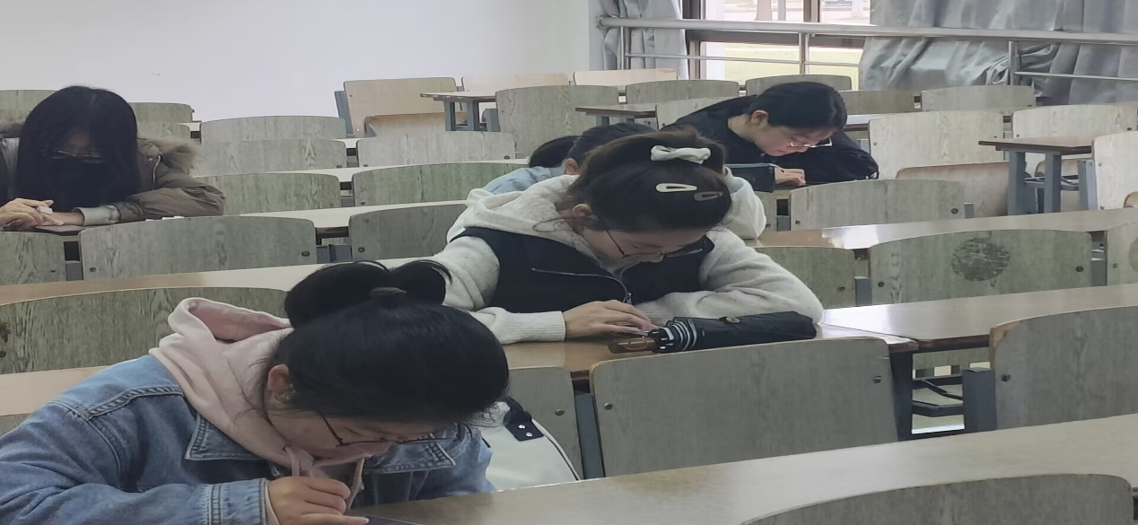 经过一番紧张激烈的抢答之后便是线上答题的进行,同学们打开相关小程序,专心致志地进行答题。答题完毕的同学安静有序离开教室。