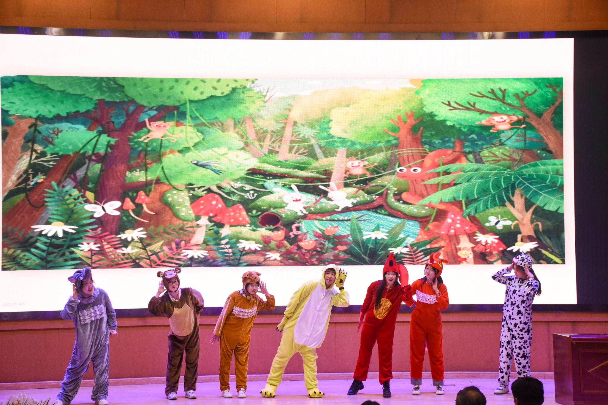 本次活动精彩纷呈,为全体观众带来了一场童梦仙境。活动首先以《亡羊补牢》拉开序幕,《白雪公主》《三只小猪盖房子》《动物招待所》等儿童剧纷纷精彩上场,各班级选手们以丰富细致的神态表情,极具表现力的肢体动作,生动且饱含情感的戏剧台词,演绎出一个个充满童心、充满童趣的童话剧,现场掌声如潮,带来一场非同凡响的视觉盛宴。