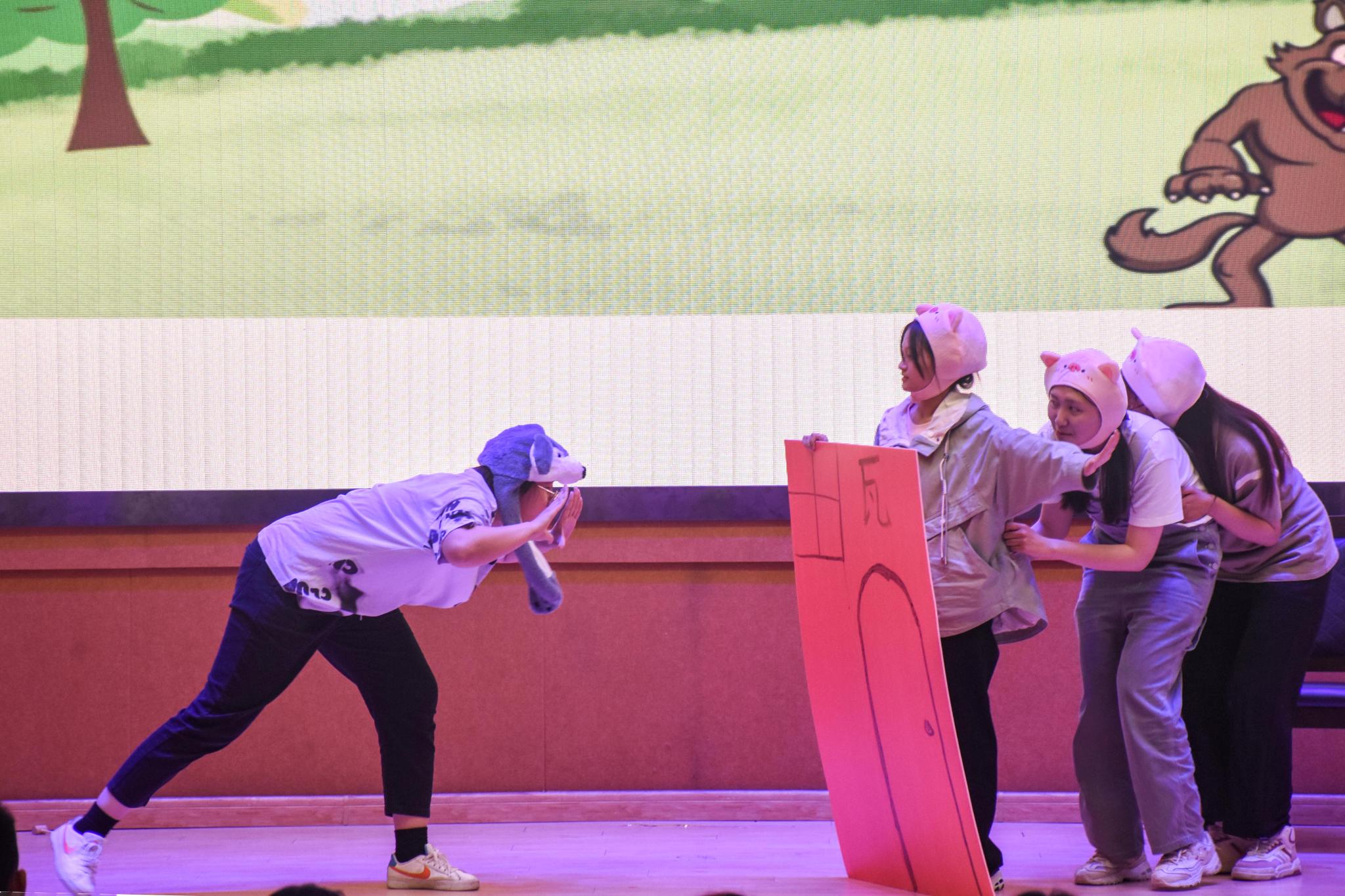 图为2206班《三只小猪盖房子》。记者 李纤忆 摄
