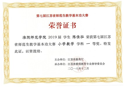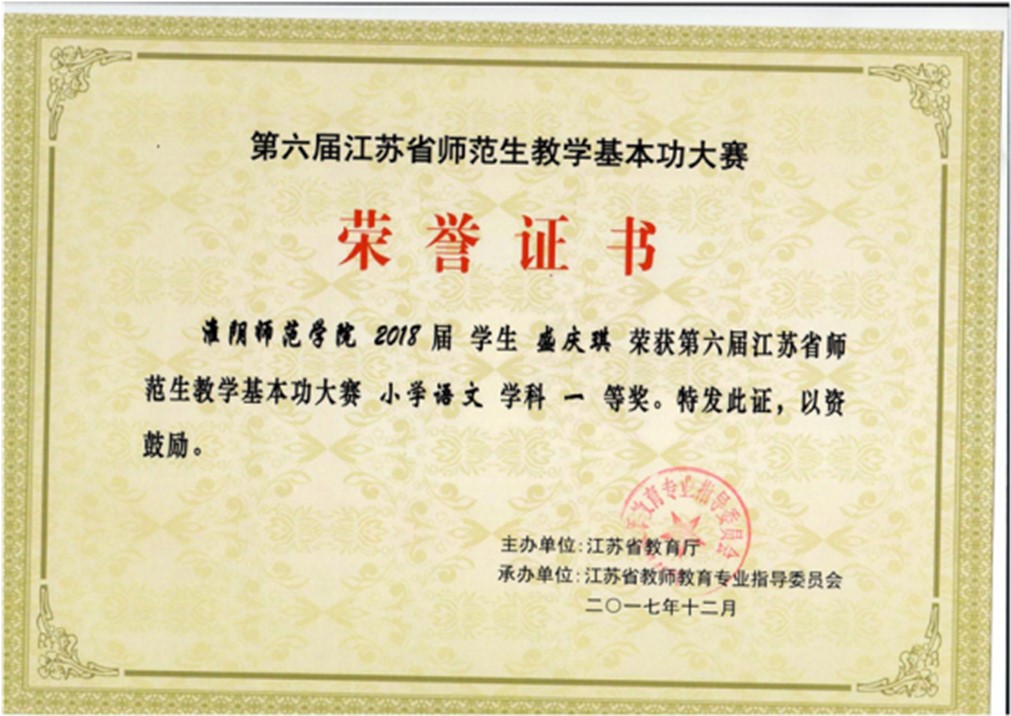 图1 今年会官网小学教育专业员工江苏省师范生教学基本功大赛获奖证