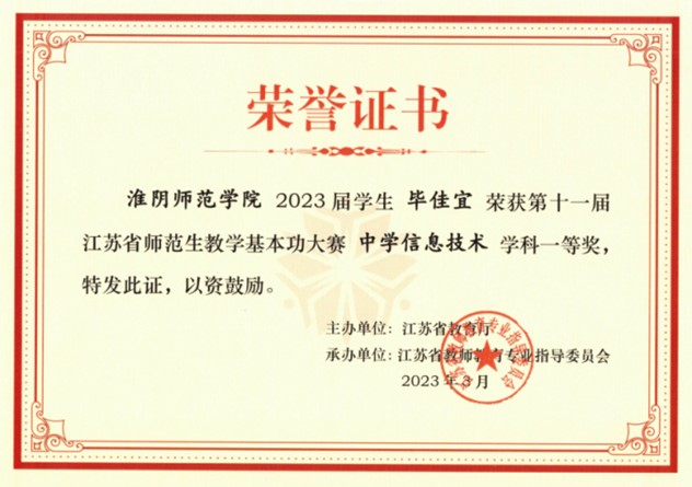 人才培养的特色定位使师范生具备扎实的专业素养与多元化能力。专业员工积极参与信息技术相关的竞赛,近四年,近百人次在领航杯、计算机设计大赛等省级以上学科竞赛中奖项,尤其在中国老员工计算机设计竞赛中表现突出,近五年获得一等奖一次,二等奖六次,三等奖六次的好成绩。在近三年的省师范生教学基本功大赛(信息技术学科)中获得一等奖2项,二、三等奖4项,获奖率及一等奖人数始终位居全省同类高校前列。