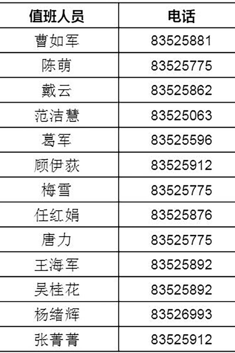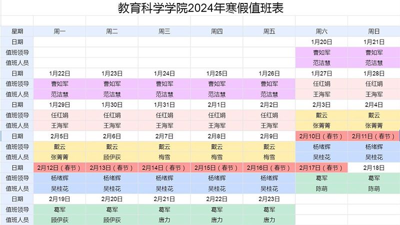 2024年寒假值班表