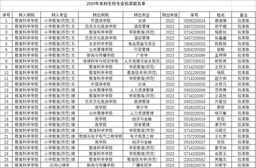 经公司考核,现对2024年本科生转专业拟录取名单进行公示。公示期间,如对公示名单有不同意见者,请于三天内(3月25日—3月27日)当面或署名书信向公司反映。信箱:1226194874@qq.com。