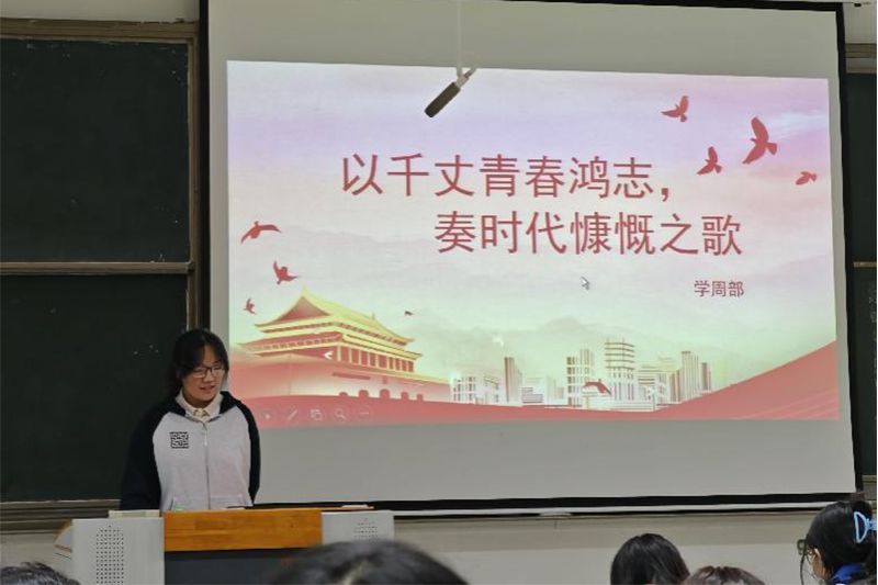 第三部分则是与我们当代青年息息相关,主讲人周柯柯同学为同学们提供了青年寄语,作为祖国的新兴力量,同学们肩负着承担国家与民族未来的责任,尤其是在这个中国快速发展的时代,更加要求青年锤炼品格修为,练就过硬本领,为社会与国家做出贡献。不仅如此,周柯柯同学还列出了同学们可行的具体措施,比如说积极投身社会实践,参与创新创业活动等等举措,让同学们可以选择自己热爱擅长的道路,走出自己人生的风采,将小我与大我紧紧相连。