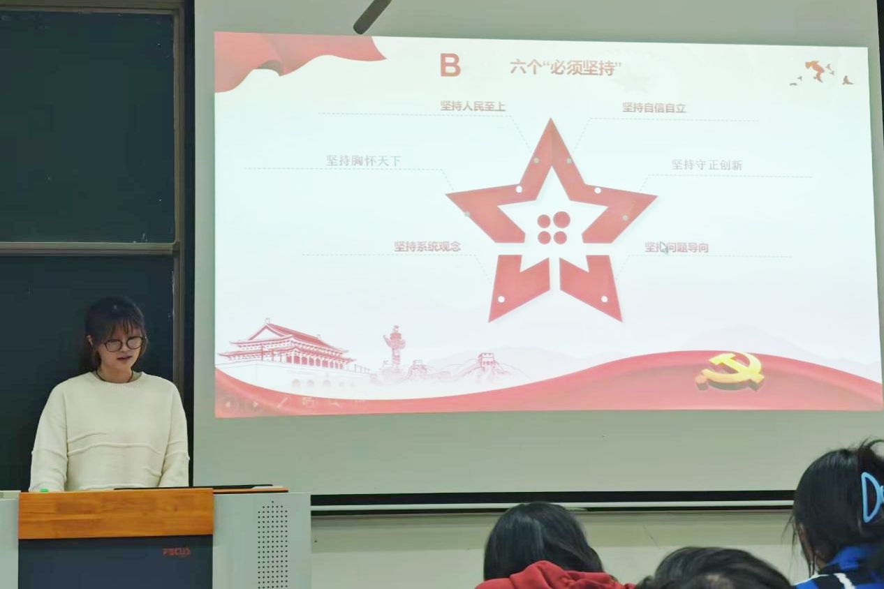 同学们认真倾听,积极参与互动,了解新时代精神的内容,并表示深有感触,深刻的感受到学习习近平新时代中国特色社会主义思想的重要性以及认识到坚持拥护中国共产党领导的正确性。
