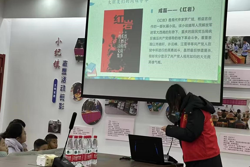 为助红色精神发扬光大,加深人们对党的理解与信任,一部分同学返乡进行了理论学习宣讲活动。他们或是自主组织线下活动,与同乡的员工们分享优秀经典文学作品,畅游于美学与知识的海洋:或是前往乡村,为信息流通不便的老人们宣讲党的二十大内容与精神,让他们了解到党为人民全心全意的贡献;或是在小学对“周恩来精神”进行宣传,教育祖国的花朵们奋勇向前、坚毅不屈、学以报国。