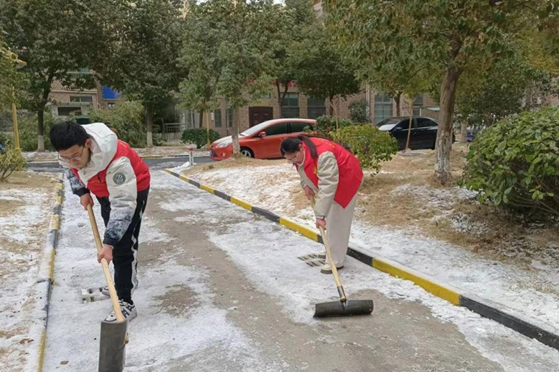 在“返乡”活动中,有这样一批同学,做到“纸上得来终觉浅,绝知此事要躬行”,充分运用自身的专业知识,大胆尝试投入到社会工作中去。去公司实习,锻炼文件处理能力与人际交往能力;参与银行志愿服务,耐心坚守岗位,引导顾客,为人民服务;协助幼师教学,尝试与小朋友打交道,与其分享快乐;在下雪天帮助村委工作人员铲雪,为清理、美化社区贡献了一份绵薄但厚重的力量。等等。