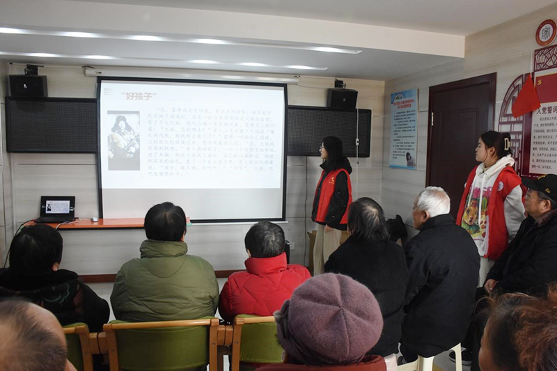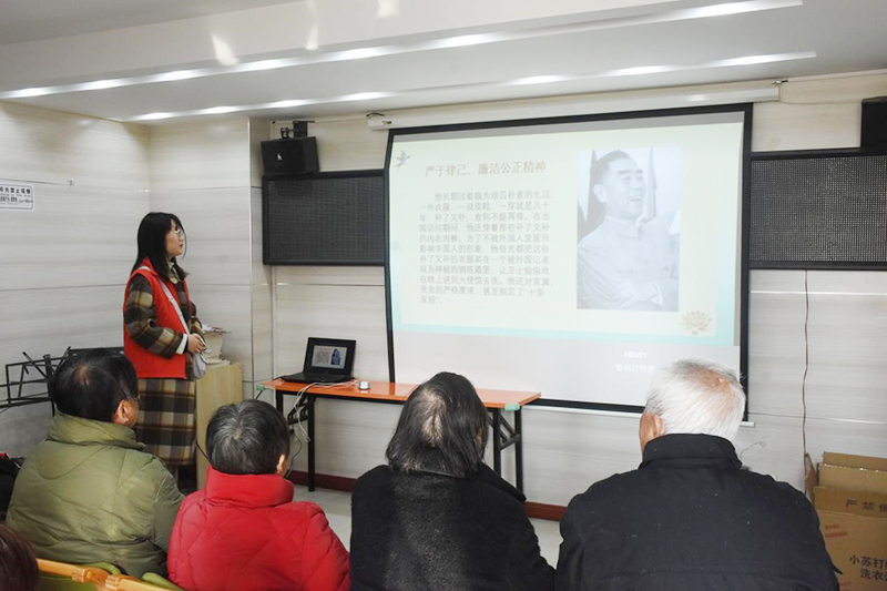 在活动筹备之初,教科学子们踊跃报名,积极参与,希望在学习雷锋的志愿活动中贡献自己的一份力量。在活动中,同学们用雷锋小故事引入,从“螺丝钉精神”讲到“全心全意为人民服务”,以饱满的热情向老人们讲述雷锋“无私奉献,热爱劳动,助人为乐”的大我情怀,为老人营造良好的生活氛围。此外,在周恩来总理诞辰125周年之际,同学们借此机会向老人们传递了周恩来“鞠躬尽瘁,死而后已”“求真务实,脚踏实地”的伟人精神。在教科学子的生动解说与老人的专注倾听的温情互动中,星光社区充斥着伟人的精神力量。在活动进入到尾声之时,同学们还为老人提供便民咨询,情绪疏导等惠民服务,比如看爷爷们打打牌,与奶奶们唠唠嗑等,在一声声平凡的家常话中拉近了与老人的心灵距离。