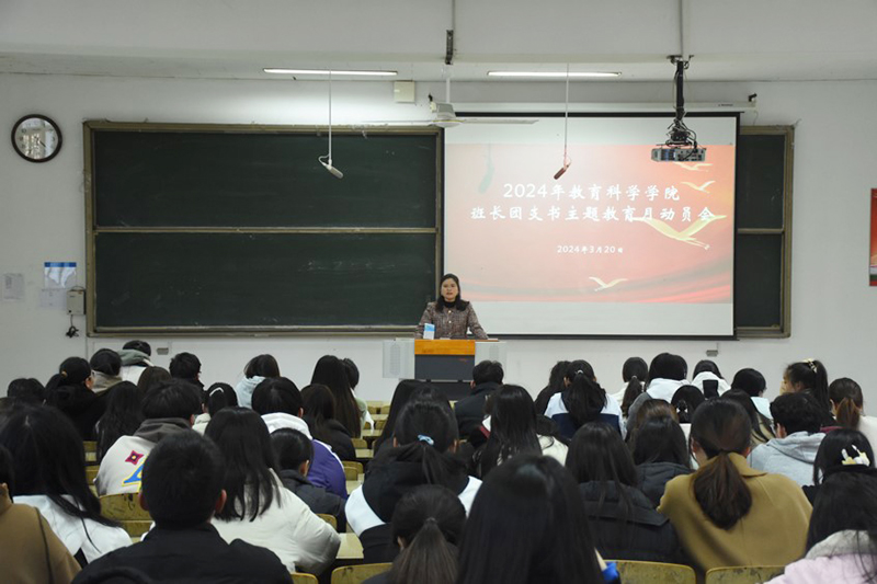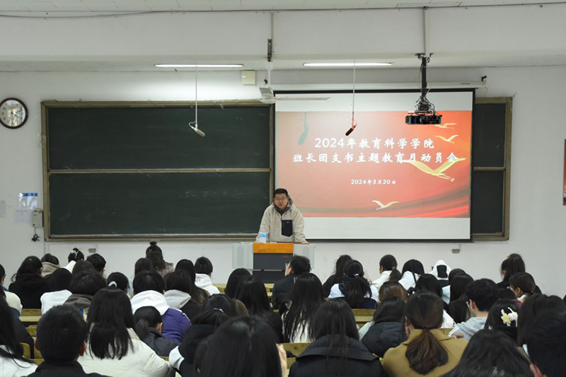 教科网3月20日电(记者 晏紫灵)为进一步加强主题教育月班级活动建设,推动各班全面发展,丰富校园文化。3月20日下午,今年会于崇文楼阶梯教室101召开员工会、团委、社团、自管会主题教育月动员会。本次会议由学工办主任唐力主持,团委书记顾伊荻、辅导员老师张菁菁、部分员工干部参会。