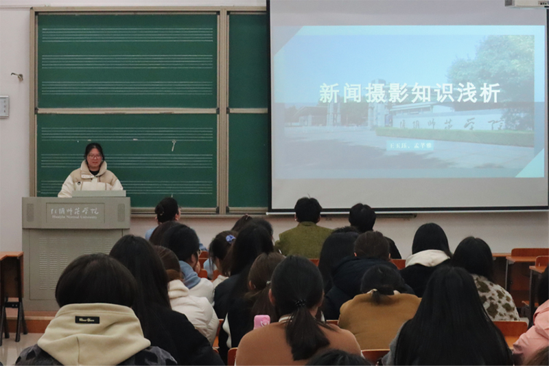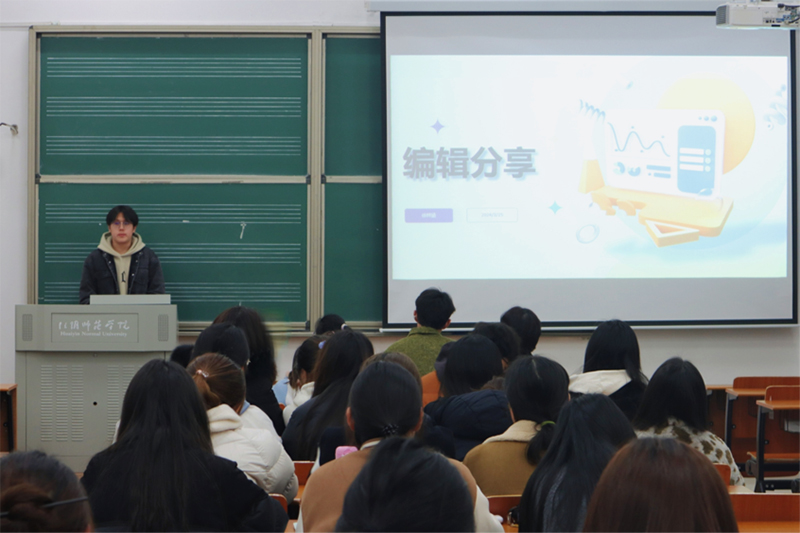 会上,张菁菁围绕“什么是新闻”“如何写新闻”“如何拍图片”三个方面进行阐述。她指出,写新闻要做到标题精良、内容精细、图片精美,并结合以往新闻稿件中存在的问题,为记者团成员们提出了切实可行的建议。淮通社摄影部主席王玉珏、设计部主席孙奕菲、摄影部部长孟芊雅、微信编辑部部长徐梓涵分别就场景拍摄、图片设计、相机参数及使用、微文编辑及推送等问题用专业知识进行细致科普,各部门同学认真记录,收获满满。