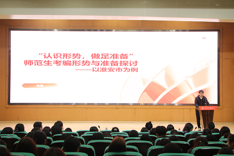 张军从教师招聘报考类型、教师招聘报考流程、教师职业发展、多渠道就业等多个方面对当前师范生求职情况进行了细致讲解,并着重对淮安市“名校优生”政策做出了全面分析。