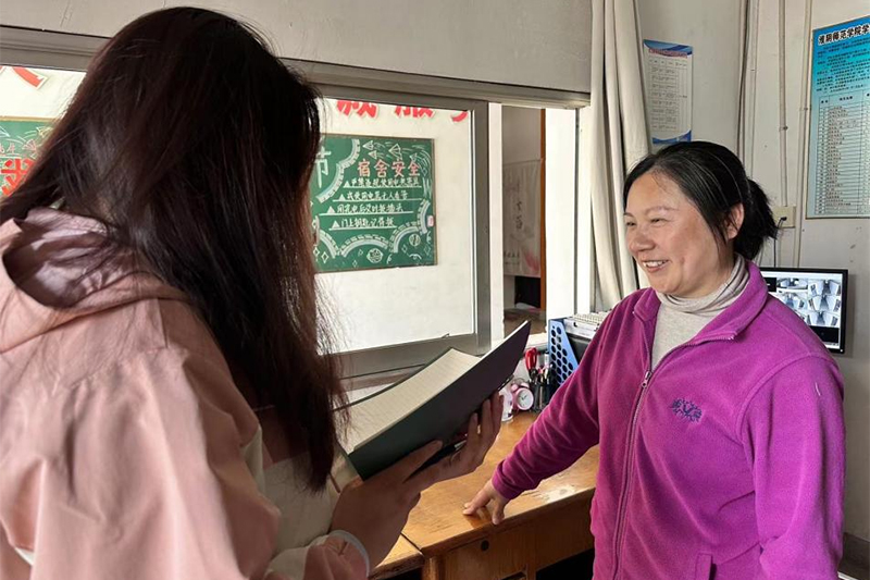 图为采访宿管阿姨现场。记者 谷雨荞 摄