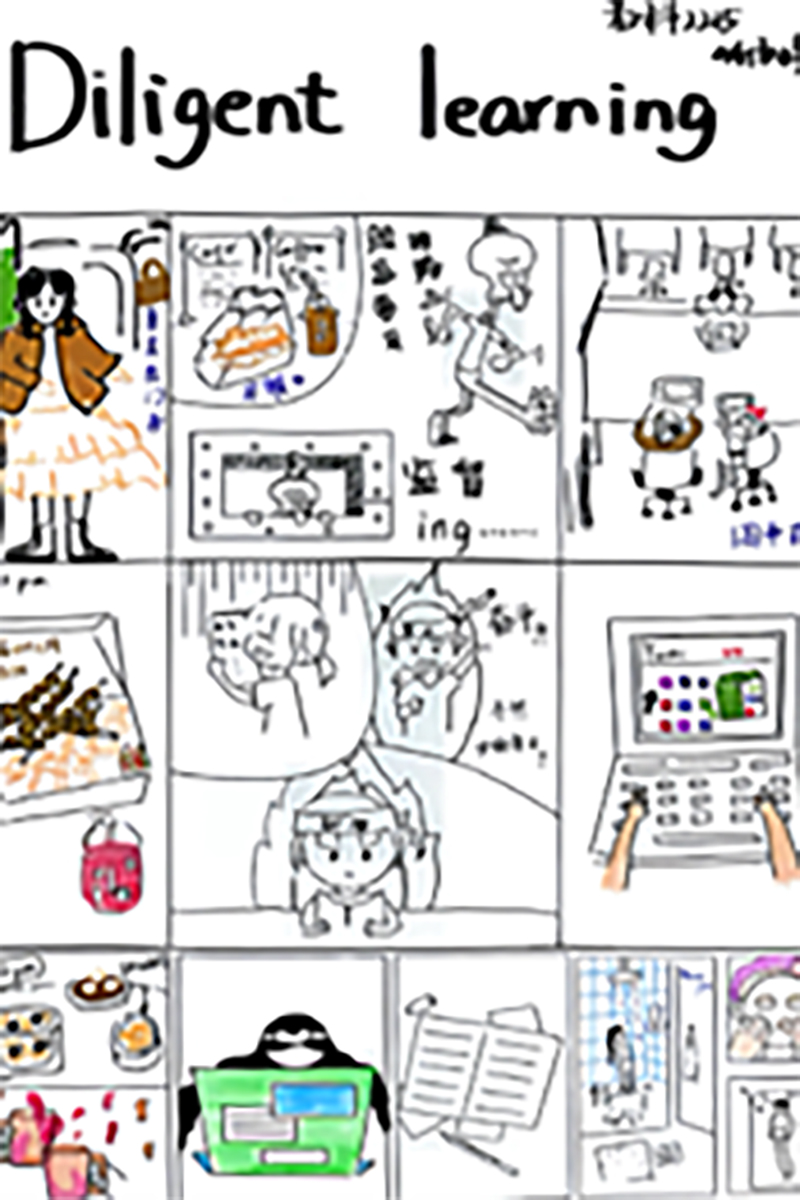 按照活动要求参赛者需要完成一幅与主题相关的连环画。活动中,大家思维活跃,迸发出灵感的火花。少年祖逖、勤学女孩、刻苦的小兔……一个个鲜活的形象跃然纸上,内容丰富多彩、绘画的人物栩栩如生,深刻体现了“ 学问勤中得,怠惰勤中消”的活动主题。