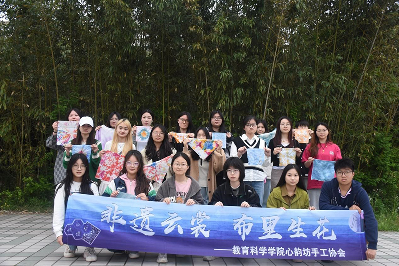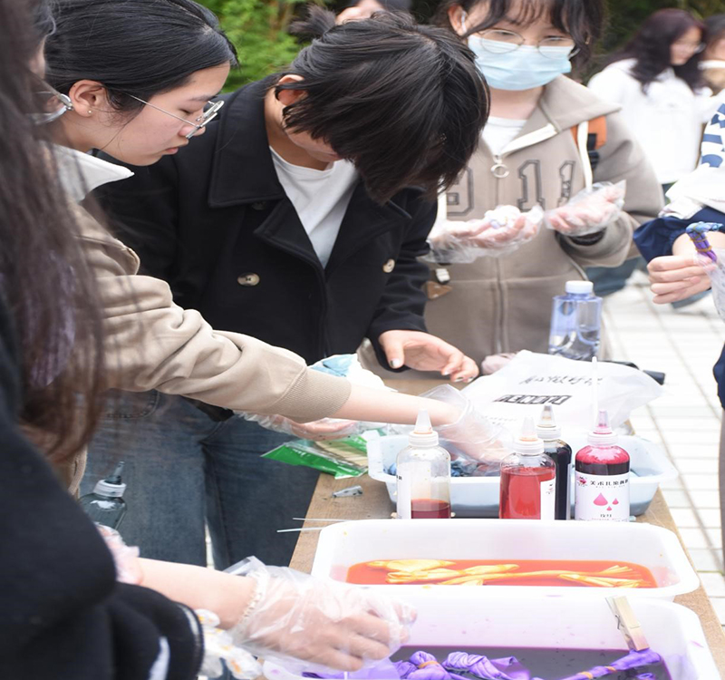 教科网4月16日电(记者 嵇文杰)当染色遇上融合,当传承遇上温暖,就勾勒出了独一无二的美妙与创意,正如我们的青春,充满未知,布满惊喜。扎染作为一项珍贵的非物质文化遗产,承载着丰富的历史和文化内涵。为更好地传承非遗物质文化遗产,心韵坊手工协会于4月13日在校内开展了此次扎染活动。会长高海畅、团支书欧阳馨秋等人负责本次活动,参与人员众多,最终作品精彩纷呈,取得圆满收官。